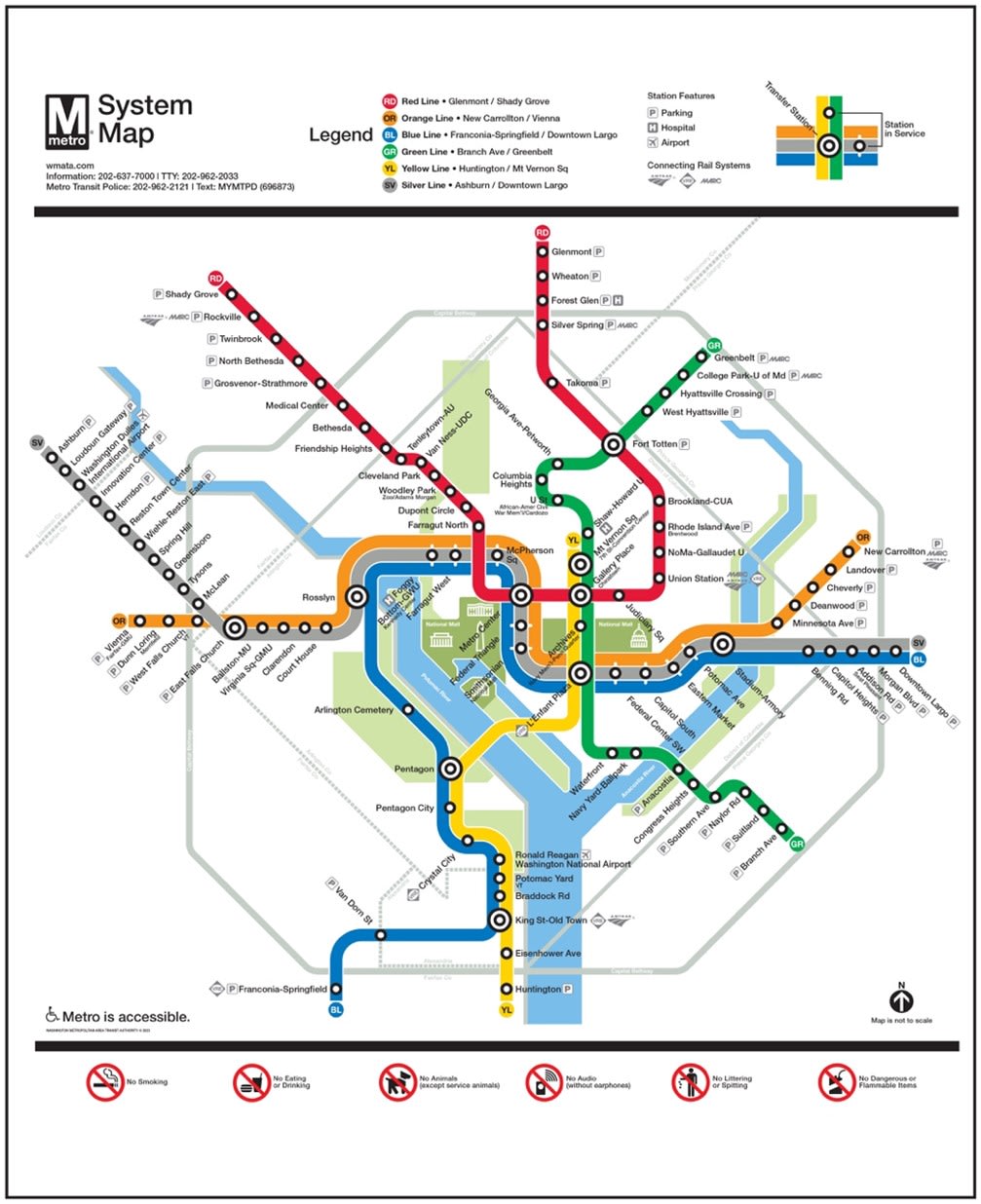 Please refer to the map below to better understand the Washington Metropolitan Area Transit Authority (WMATA) Metro system. You can also use the Trip Planner to see potential route options.